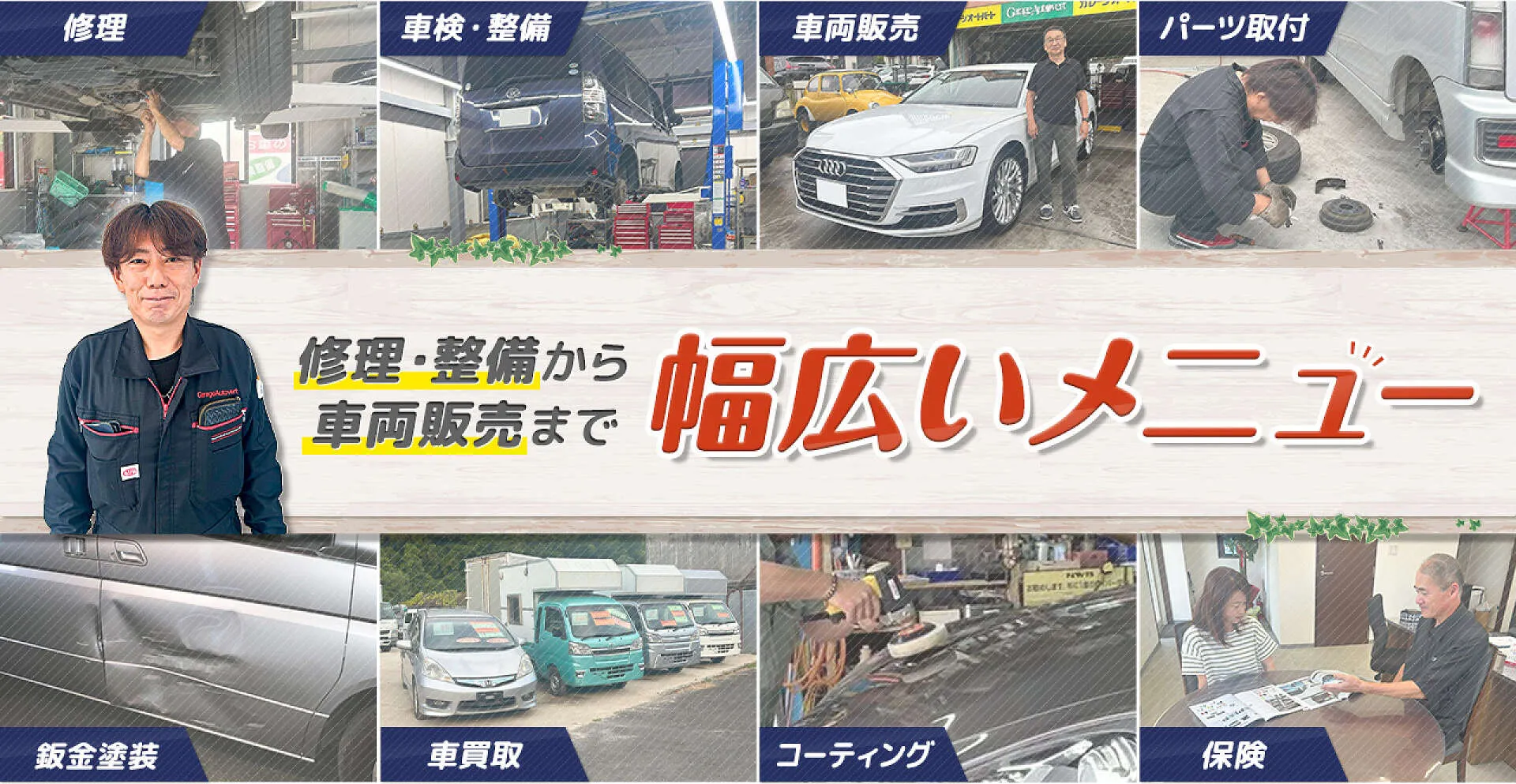 車修理から車の販売まで、幅広いメニューを取り揃えております。