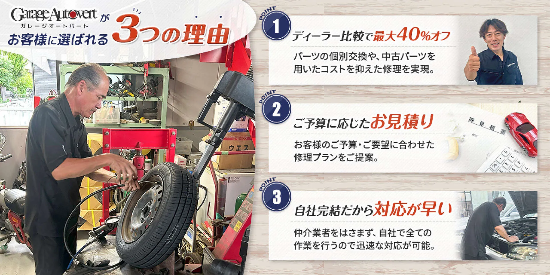 パーツの個別交換が可能なので、ディーラーより最大40%安い修理が実現。