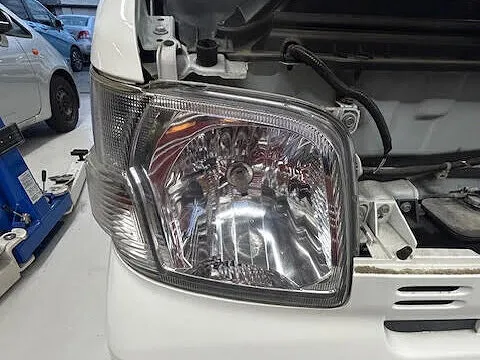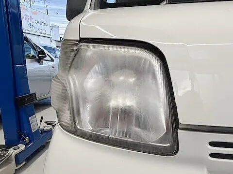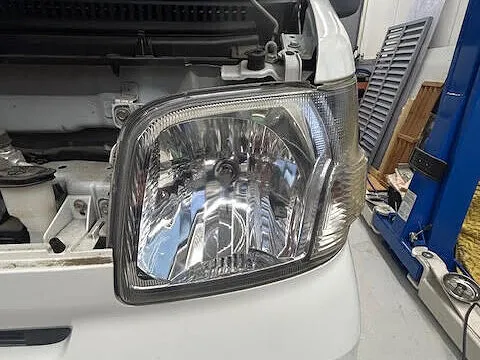 車検でご入庫いただいた、ダイハツ ハイゼットカーゴのヘッドライトリペアの事例です。