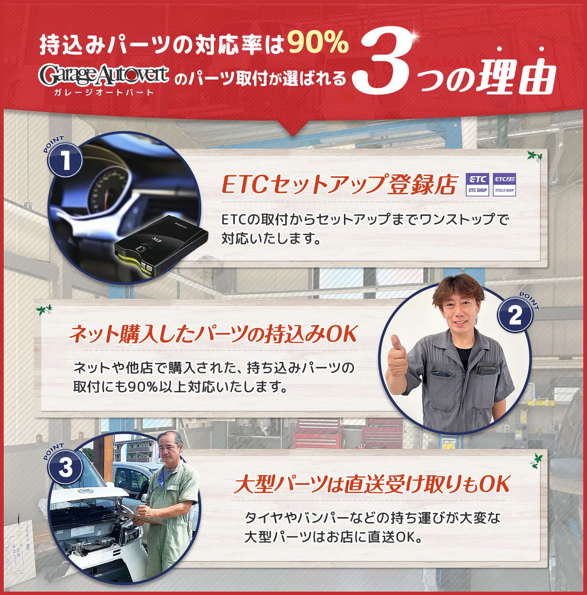 持込みパーツの対応率は90%以上│町田市 ガレージオートバート
